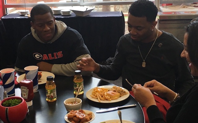 Nick Chubb eating lunch with Devon Gales, rockin' the Gales shirt. pic.twitter.com/RHODQkx0y1