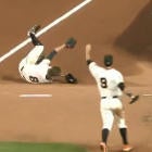 I bring this up, obviously, because it just happened in AT&T Park. One of baseball's more lovable goofballs -- who is always a great sport -- Hunter Pence made what many would call a vintage Pence play. He stumbled on the right-field bullpen mound, fell and still kept enough concentration on the ball to be able to make an inning-ending catch Monday night: