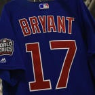 Bringing it home, the official patches have been put on the jerseys. Via Majestic, the official jersey provider for Major League Baseball, here's a glimpse at the Cubs' alternate (blue) jersey with a patch (yes, it's Kris Bryant's).