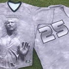 The Tennessee Smokies (Cubs Double-A affiliate) earlier this season had jerseys of Han Solo (from Star Wars and if you didn't know that, please get your life together) frozen in carbonite.