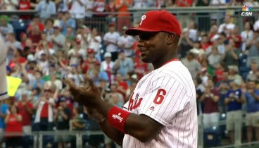 Phillies fans and players gave Utley an ovation and he went nuts at the plate