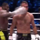 Kickboxer gets knocked out cold while not paying attention, foe assaulted by fans