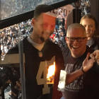 LOOK: Warriors' Stephen Curry loses bet, wears Raiders jersey at Panthers game