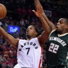 Kyle Lowry experienced some deja vu on Saturday. Not only did the Toronto Raptors drop their sixth straight Game 1 in the Lowry-DeMar DeRozan era, they did it in similar fashion to their past defeats. The Milwaukee Bucks trapped Lowry and DeRozan, throwing a bunch of long-limbed athletes their way, and the Raptors' offense bogged down into isolation play, leading to a lopsided loss. Lowry, who averaged 22.4 points, 7.0 assists and 4.8 rebounds in his best regular season yet, finished with just four points on 2-for-11 shooting, including 0-for-6 from deep. Something had to change on Tuesday, and it did.