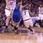 WATCH: Klay Thompson takes nasty knee to the thigh, has returned