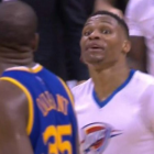 Even with the Warriors up big in the third quarter, Westbrook made a series of dazzling plays to try and turn the momentum, and headed into a timeout, Westbrook and his former teammate exchanged, um, pleasantries.