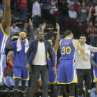 “They missed some open ones, but that’s obviously a big focus for us,” Kerr said. “When we play these guys, we try to keep them off the line, run them off the line, force them to beat us with 2s, so we did a great job on the 3-point defense.”