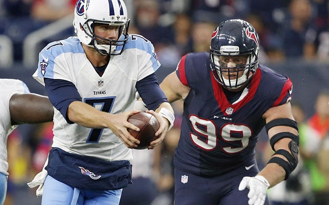 Tennessee, we have a problem: The Titans' line is a mess. Left tackle Taylor Lewan, who was good as a rookie in 2014, has struggled big time lately. He was bad against the Texans. I mentioned Poutasi’s struggles, but Warmack wasn’t very good either, nor was left guard Byron Bell. They have major issues up front. Looney, who is playing for the injured Brian Schwenke, also struggled.