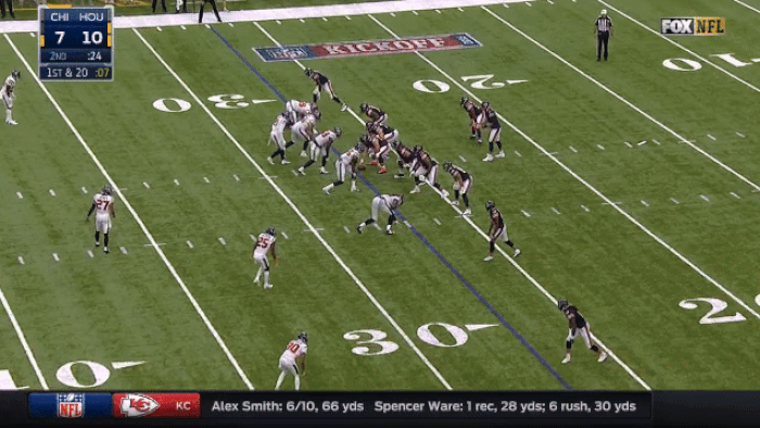 The Texans sacked Jay Cutler five times and hit him 12 times. Most of that pressure came around the edges, because Chicago's combo of Kyle Long and Josh Sitton shut down the Texans' front.