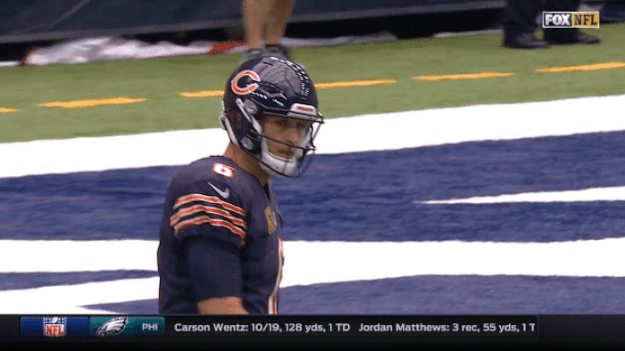 Keep in mind, with 24 seconds remaining in the first half, the Bears faced a first-and-20 at their own 27-yard line and the conservative John Fox still decided to go for some points. Thanks to Jeffery, the Bears scored a touchdown a few plays later.