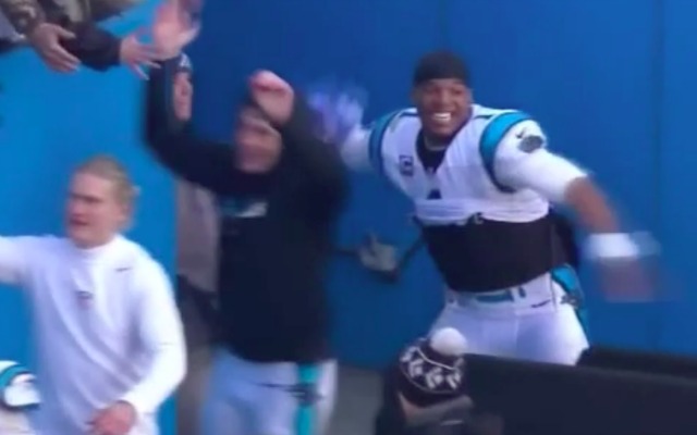 The Panthers survived the Seahawks' second-half rally on Sunday, advancing to the NFC Championship Game with a 31-24 win. And that led to one happy winning quarterback.