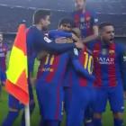.@LuisSuarez9 sends the Camp Nou into raptures by sticking his noggin on the end of a @neymarjr cross #beINElClasicohttps://t.co/zj4JJ4T9dk