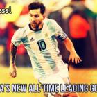 He just keeps making history. Argentina superstar Lionel Messi is now Argentina's top goal scorer ever after scoring his 55th goal in the team's Copa America semifinal against the United States on Tuesday night.