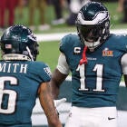 Two of the NFL's most talented receivers are in action Thursday night when the Philadelphia Eagles visit the New York Giants as A.J. Brown and DeVonta Smith suit up for Philly. Those two are among the league's best wideouts, but that's only when they're getting the ball thrown their way. Smith has 25 catches this year while Brown has 19. Brown reportedly had a meeting with Eagles quarterback Jalen Hurts and running back Saquon Barkley about the offense, which put up just 17 points in a loss to the Denver Broncos on Sunday.