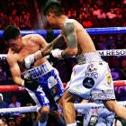 Both fighters hit the canvas in this 126-pound duel that featured strong ebbs and flows, along with pockets of two-way action. The 26-year-old Magsayo, who is trained by Pacquiao mentor Freddie Roach, unleashed a backflip in celebration following the finish of an exciting fight that tested his toughness.