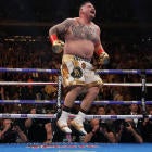 With blood starting to flow out of his nose, Joshua took the standing eight count and got on with the action, but it wasn't long until Ruiz had him in trouble again. A left hook sent Joshua to a knee and his mouthpiece to the canvas. Though Joshua again rose to his feet, the referee decided he was in no condition to continue, and waved off the contest.