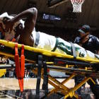 Michigan State's Eron Harris carted off the floor after traumatic knee injury