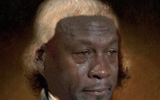 The UVA bench got headlines for becoming the human version of the shrug emoji earlier in the game. Now Shruggy meets Crying MJ.