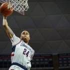 On offense, UConn is in the top 10 of the country in adjusted offensive efficiency, and the Huskies dominate the offensive glass. The Huskies secure 39.2% of available offensive rebounds, the nation's best mark, and UConn grabs more than 40% of missed shots in conference play. With top-three marks in the Big East in 3-pointers per game (9.0), assists percentage (61.9%), assists per game (17.4), free throw attempts per game (19.6) and free throw accuracy (76.1%), UConn is exceptionally difficult to stop.