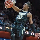 Senior guard Sasha Stefanovic was red hot against the Tar Heels on Saturday, scoring 23 points and dishing out eight assists. For the season, Stefanovic is averaging 16 points, 3.8 assists and 2.3 rebounds per game. He is a 40.3 percent career 3-point shooter. He had a strong junior season, appearing in 25 games with 21 starts in 2020-21 and averaged 9.3 points, 2.6 rebounds and 2.6 assists, while shooting 41.6 percent from the floor.