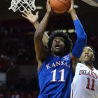 Second-ranked Kansas was pushed early, but its road game at Oklahoma ended well, and it included one of Josh Jackson's more forceful plays of the season.