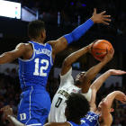 This season? With those four supremely talented freshman starting, Duke can score in bunches, and more effectively than any team but one in the sport; its 126.2 offensive rating ranks behind only Villanova. When Duke flips the switch on offense, no one in the nation is stopping the Blue Devils. But defense is again Duke's Achilles heel. In defensive efficiency, Duke ranks only 73rd. It rarely creates turnovers. It defends 3-pointers at a mediocre rate, giving up way too many open shots beyond the arc.
