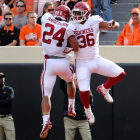 3. Justice Hill is a monster: Hill finished with a career-high 220 yards on just 29 carries. He was unbelievable throughout against a really strong run defense on the Oklahoma side of the ball. OU came into the game having only given up 200-plus yards in two games all season, and Hill did that by himself for the Cowboy s on Saturday. He gets a little lost amid all the talk about Mason Rudolph and Oklahoma State's bevy of elite receivers, but he showed on Saturday why he's probably the best running back in the Big 12.