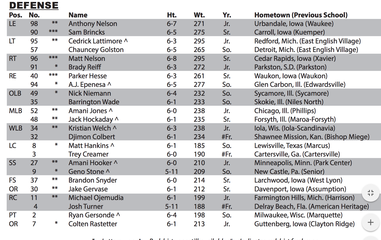 The 6-foot-3, 272-pounder is listed as a backup on Iowa's preseason depth chart.