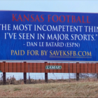 A group from the website SaveKSFB.com placed a billboard on I-70 near Topeka, Kansas, which quotes ESPN's Dan LeBatard describing the state of the football program. LeBatard describes Kansas football as "the most incompetent thing I've seen in major sports."