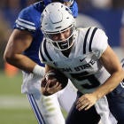 Last week's Utah State-New Mexico game didn't feature much offense. The Aggies had 280 total yards while the Lobos put up 258. But the difference was UNM's two turnovers, one of which was run back for a 55 yard touchdown by safety Hunter Reynolds to seal the game in the fourth quarter. Aggies starting QB Cooper Legas, subbing for the injured Logan Bonner, who is out for the season after foot surgery, threw for a modest 149 yards on 13 of 27 passing with one score.