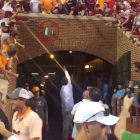In a sea of Alabama fans to the right of the tunnel, Kiffin instead chose to lob the visor up top to one of the Tennessee fans that hung around to see him off of the field.