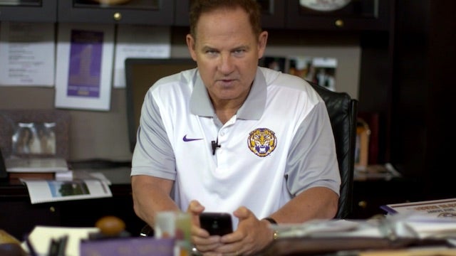 LSU released a video of Les Miles preparing for the unlimited text messages he, and other coaches, can now send to recruits.