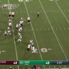 Texas State then drove down the field in 38 seconds, setting up a game-tying field goal with this incredible throw and catch.
