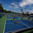 The sound of a hollow plastic ball with holes can be heard in many, many parks across the United States. Pickleball -- which combines many elements of tennis, badminton and table tennis -- can be played indoors or outdoors, in a court that is a quarter of the size of a tennis court. While singles is more popular in tennis, doubles is more common for pickleball. Just like Sean experienced, you can go to a pickleball court without a partner because the unofficial rule in public places is that you switch partners after each match.