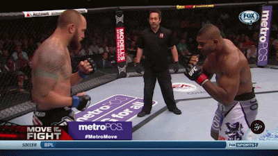 Overeem pinned Browne against the cage and pounded Browne with punch after punch to head, but Browne eventually freed himself. Browne fired off a few precursor kicks to the side of "The Reem" setting up this vicious front kick to his face.