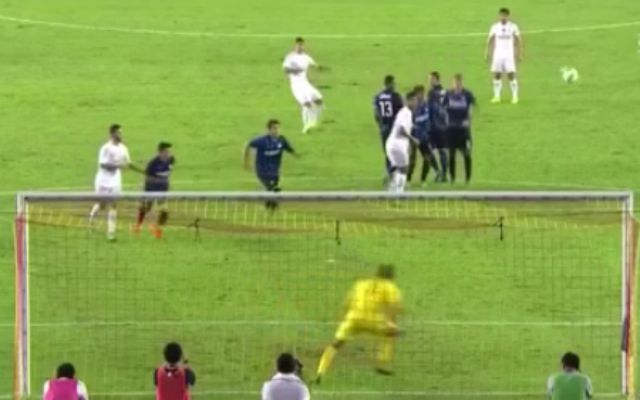 Yep, that's a free kick that curls around a four-man wall while still maintaining enough pace that it's able to beat the goalkeeper just inside the post. Not bad.