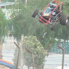 During a qualifying run, Williams was attempting to drift around a corner when his car started to tilt and flip over.