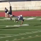 Though unorthodox, he's moving through the drill a lot better than some of his teammates. Maybe that's why his coaches don't really seem to mind.