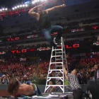 As Styles was prepared to climb the ladder after dispatching Ambrose, James Ellsworth -- hobbled in a neck brace -- limped to the ring as a distraction. Ambrose took advantage, hit Dirty Deeds on the steel steps and immediately crawled into the ring and up the ladder. Styles entered the ring and started climbing the ladder, but one punch by Ambrose knocked him through the ropes and suddenly it looked like Ambrose would be the new champion. Instead, Ellsworth pushed the ladder to the side, throwing Ambrose into a pair of ladders assembled at ringside. Ellsworth motioned Styles into the ring and watched on as the champion climbed the ladder, grabbed the belt and retained his title.