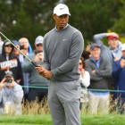 Last month during the PGA Championship at Bethpage Black, we saw Woods fade a bit on the way to a missed cut (by one stroke) on Friday afternoon, but here at Pebble Beach, he's surging late and trying to get scores where other golfers won't to preserve his place in the championship.