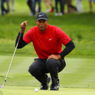 Shot of the day: Badly needing some juice, Woods drained this 42-foot birdie putt at 13 to kick-start the late scoring run.