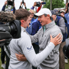 Lastly, the man who seems to be carrying this entire sport stood at the edge of the green alone as he waited to hug his Ryder Cup teammate. McIlroy embraced Fitzpatrick by the back of the head and said, "I'm so happy for you." If there's somebody who carries more weight in golf right now than Rory, I'm not sure who it would be. That moment, like this tournament, meant more given who Rory is and the high-stakes decisions he's dealing with right now.