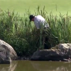 Mickelson found himself in the thick stuff on the edge of the water hazard at the sixth hole and decided to try and hack it out. He did not succeed the first time, but Phil isn't a quitter, so he took a second swing. Nothing.