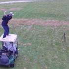 We have not seen someone atop a moving golf cart, though, until now. Ryan Rustand recently posted this incredible video of a juggling golf cart passenger popping a ball up to be hit with a driver while moving.