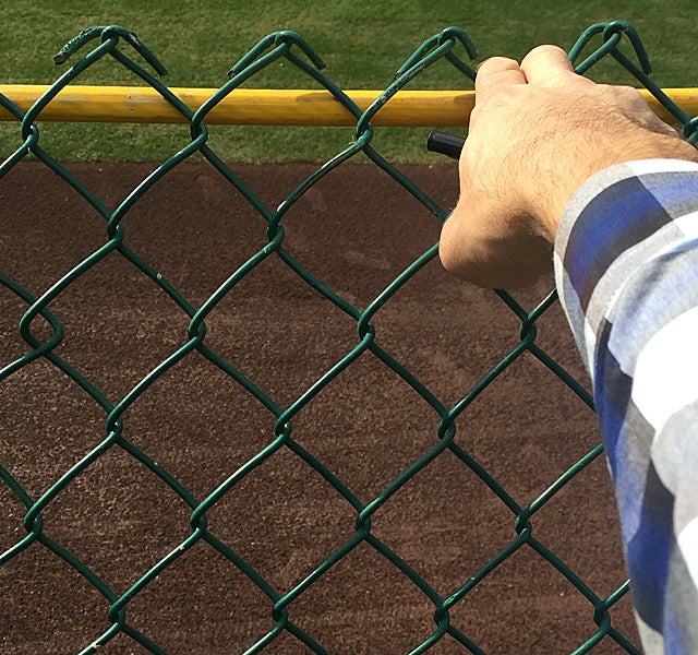 I'm 5-foot-8 and have an average wingspan for that height. Here's me standing up and reaching as far as I can. Yes, taller people would be able to interfere with a ball in play and we've seen it a few times this year. Stop doing that, people: