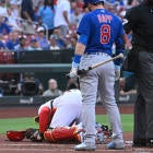There was some bad blood to begin Thursday's game (CHC 10, STL 3), both literally and figuratively. Cubs outfielder Ian Happ accidentally nailed Cardinals catcher Willson Contreras with his backswing in the first inning, hard enough that it drew blood and forced Contreras to exit the game. Chicago announced the injury as a scalp laceration and said Contreras is day-to-day.