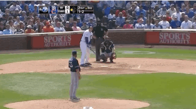 The next to do so? Jonathan Herrera of the Cubs. In the third inning of Friday's game against the Padres (yes, big-league debutante Kris Bryant isn't the only story from this tilt), Herrera did his level best to get in the head -- and perhaps the craw -- of San Diego ace James Shields. Please regard the following action-technicolor GIFs ...