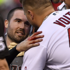 Arizona Diamondbacks left-hander Robbie Ray was carted off the field during the second inning of Friday night's game at St. Louis after being struck in the head by a Luke Voit line drive: