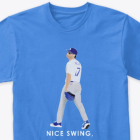 You can check out the reported look for the shirt, which says "Nice Swing, B---h," here.