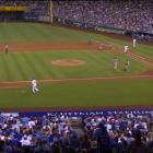 Angels skipper Mike Scioscia came out of the dugout immediately to argue with home plate umpire Phil Cuzzi, claiming Mondesi was running inside the first base line, forcing the error. You're not supposed to do that. An interference call would have wiped the two runs off the board. Here's the play: